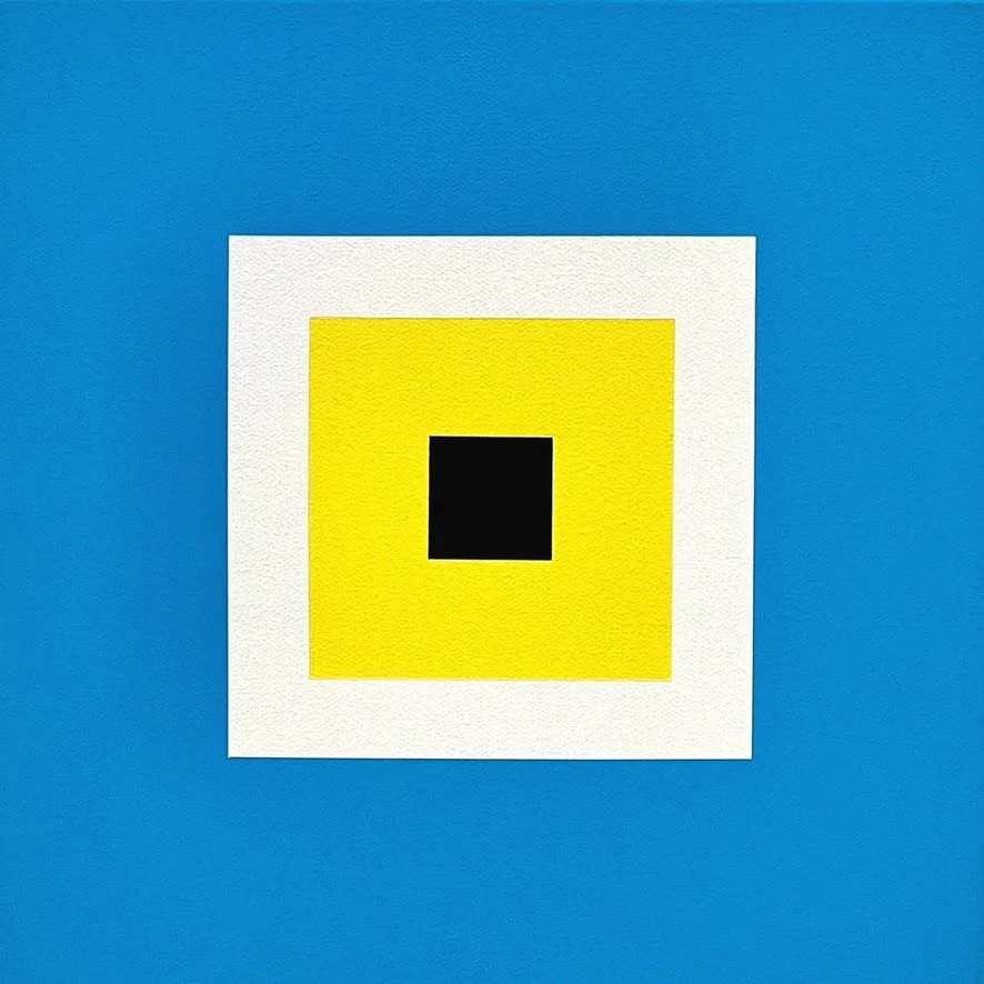 Following The March of the Sunflowers, the first step forward was a step inward: isolating a single sunflower from the collective. Seen from the front, distilled to its purest expression, it became a modular system. Four nested squares, each capturing one of the flower’s essential colours.