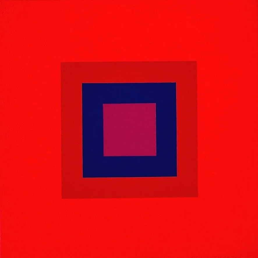 Each of the nine works in this series follows this same structure, a symmetrical square-within-square form, yet each represents a different flower, carefully chosen. Not all flowers qualify. Only those with a defined and recognisable colour palette in the collective imagination are permitted into this lexicon.